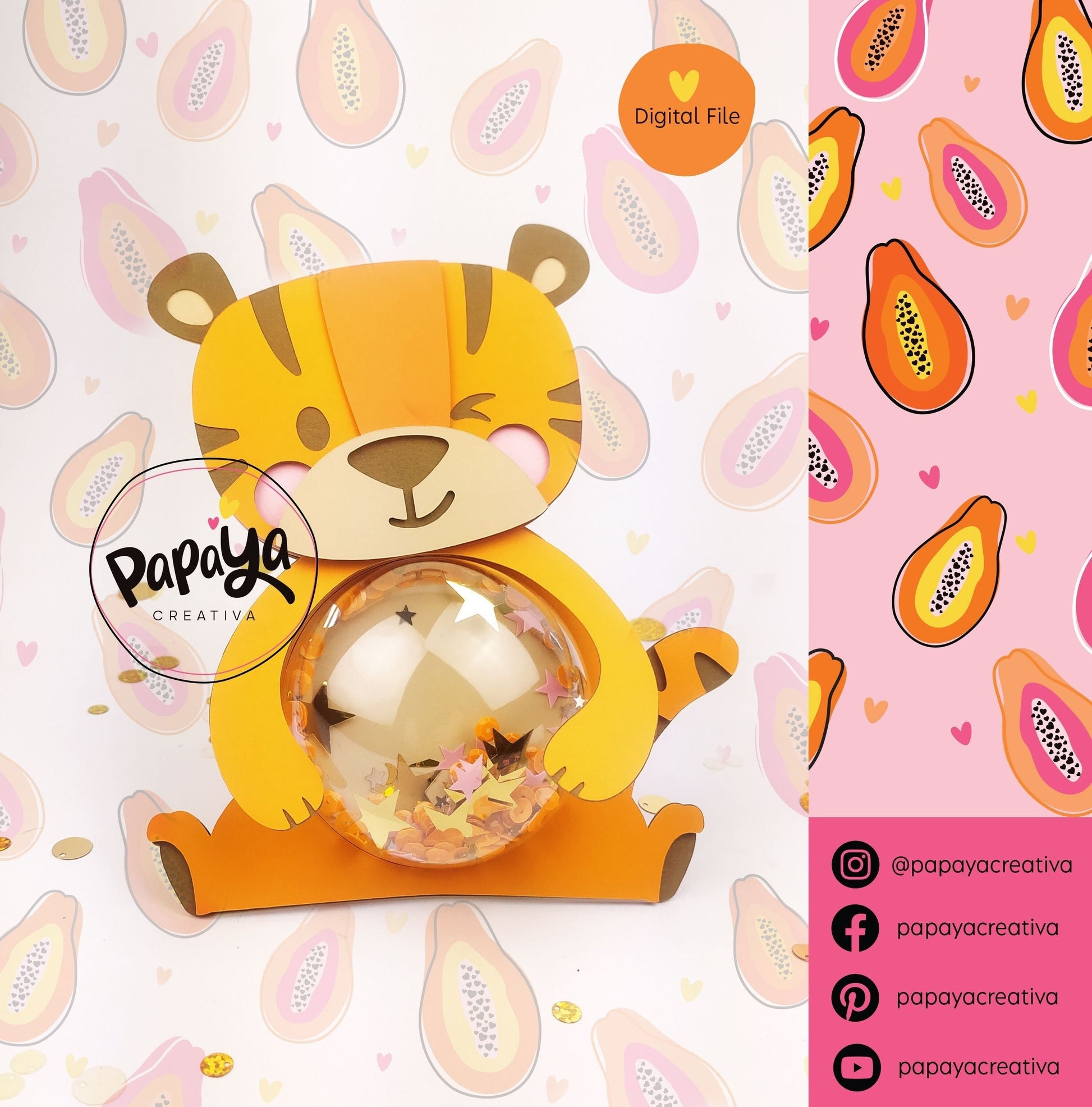 Tiger DIGITAL FILE Candy holder / Dome size 8cm *dashed lines to open for sweets*